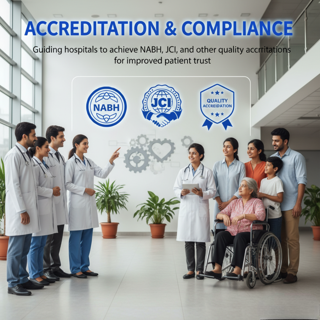 Guiding hospitals to achieve NABH, JCI, and other quality accreditations for improved patient trust.