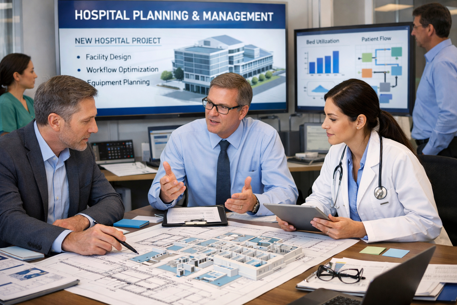 Assisting in setting up new hospitals or improving existing ones through optimized infrastructure and workflow planning.